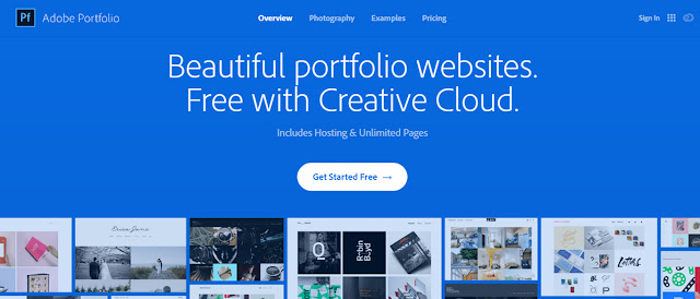 Adobe Portfolio offers the option of creating a welcome page (contact details, biography and links to profiles on social networking sites) and building a gallery of works that can be sent directly or imported from Behance or Lightroom. The platform automatically adapts to any device.